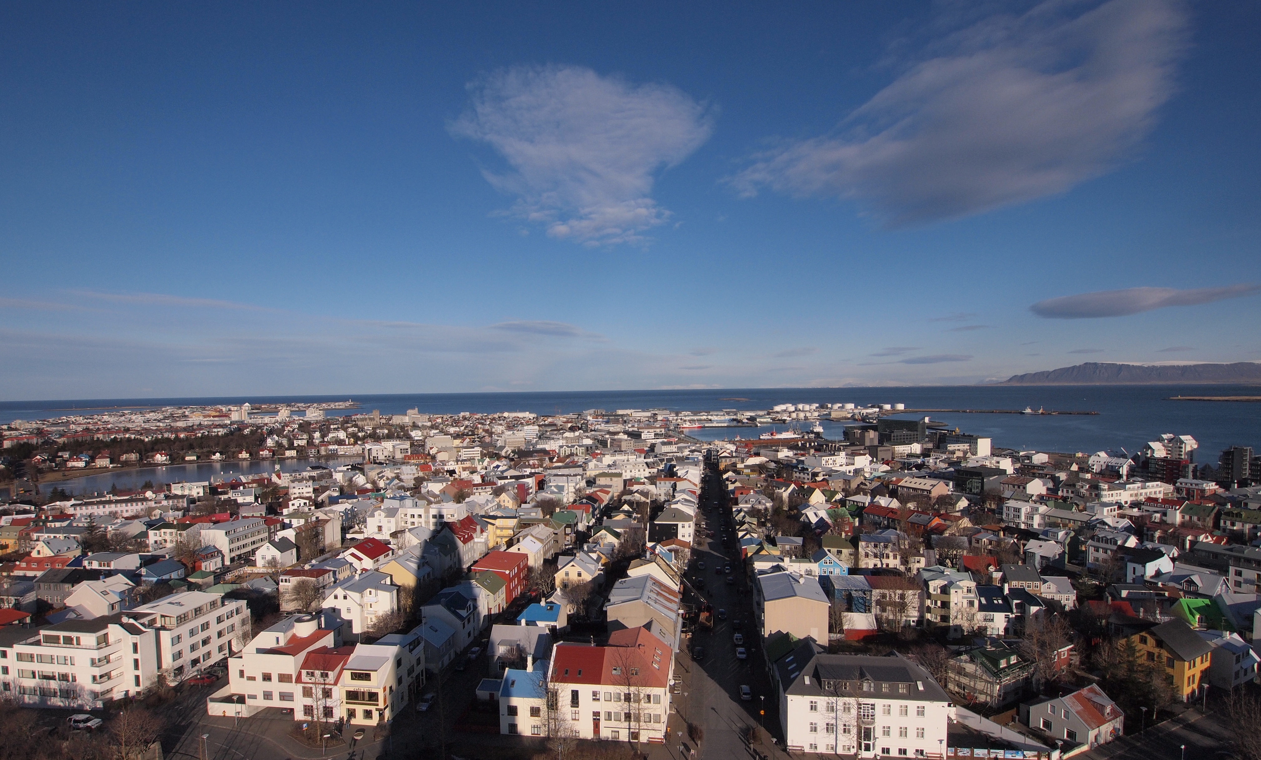 View of Reykjavik (capital of Iceland) from Hallgrimskirkja, Iceland's tallest church