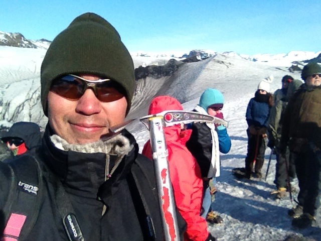 Ready to hike with ice axe and crampons, but not prepared for the blustery below-zero wind chills