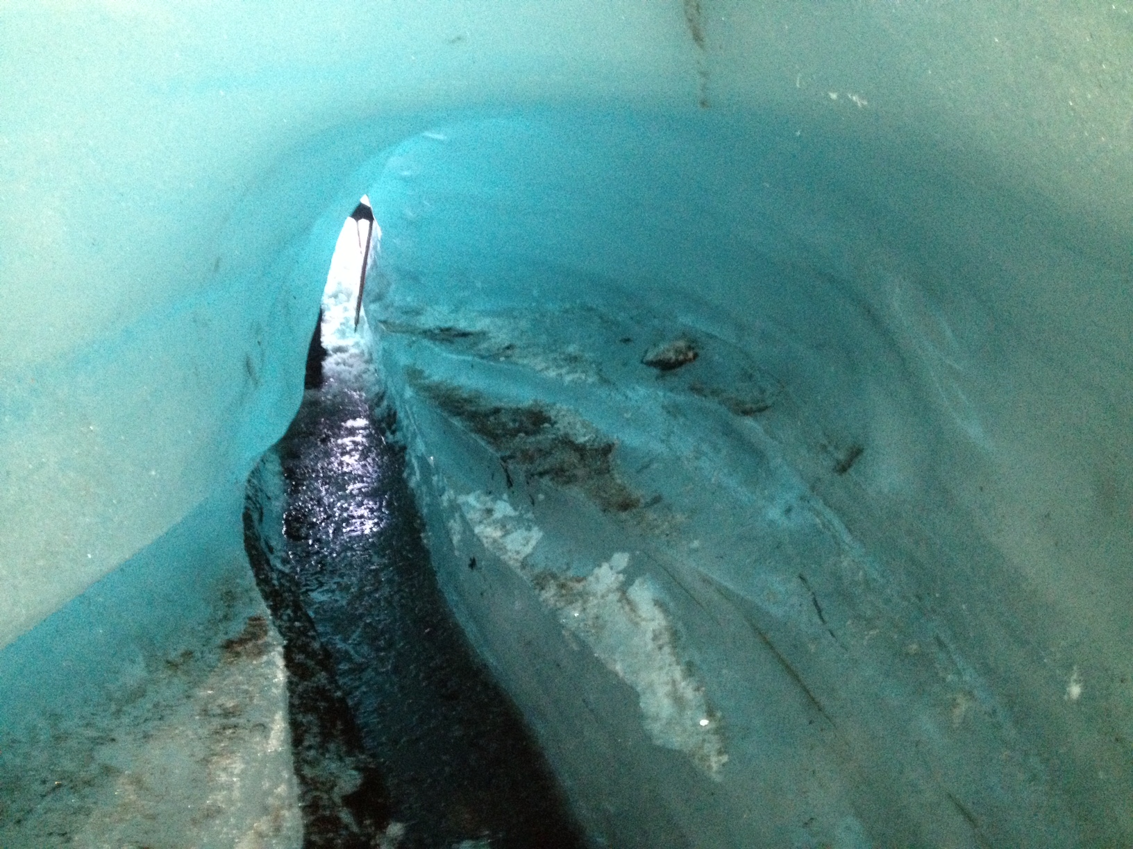 Exploring an ice cave with an opening just big enough for one grown man to enter