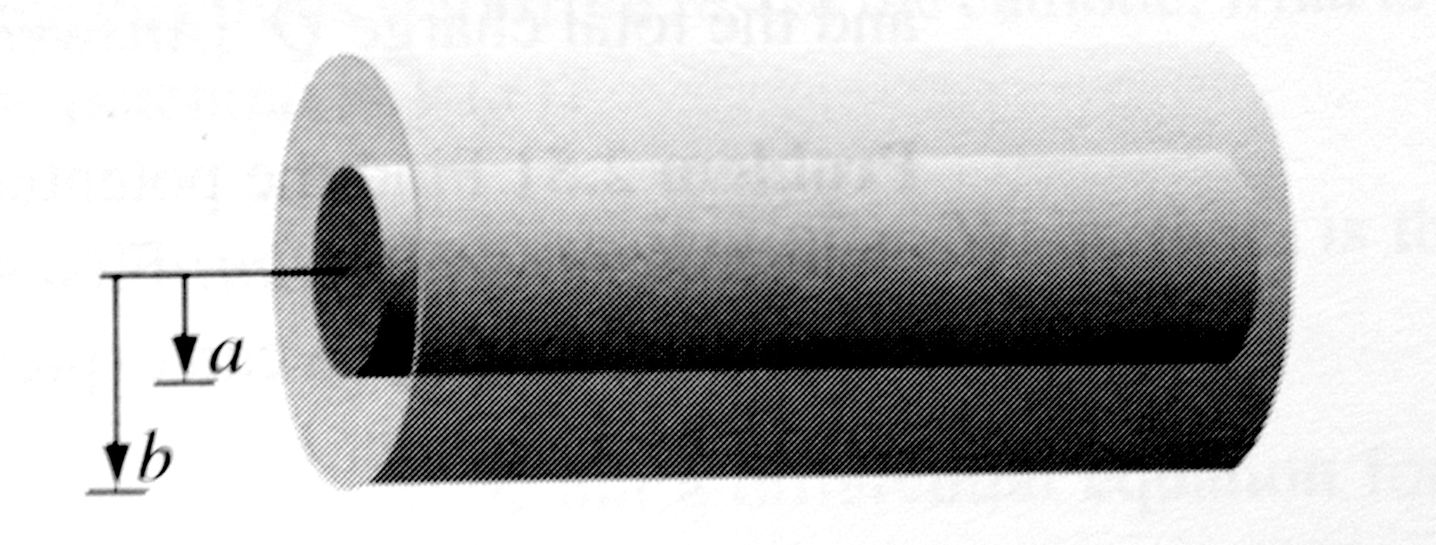 3) Find the capacitance per unit length of two coaxial metal cylindrical tubes, of radii a and b (see figure below)